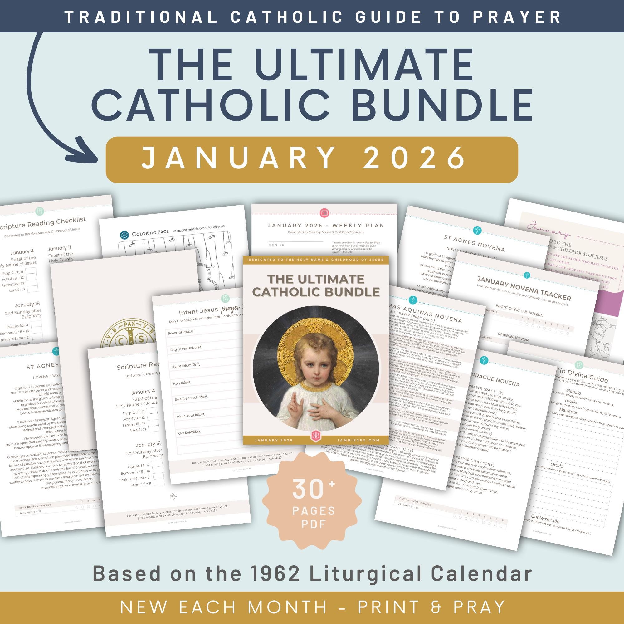 Traditional Catholic Monthly Devotions are at the ready with this printable bundle - packed full of Traditional Catholic printables for the month of JANUARY, which is Dedicated to the Holy Name & Childhood of Jesus.