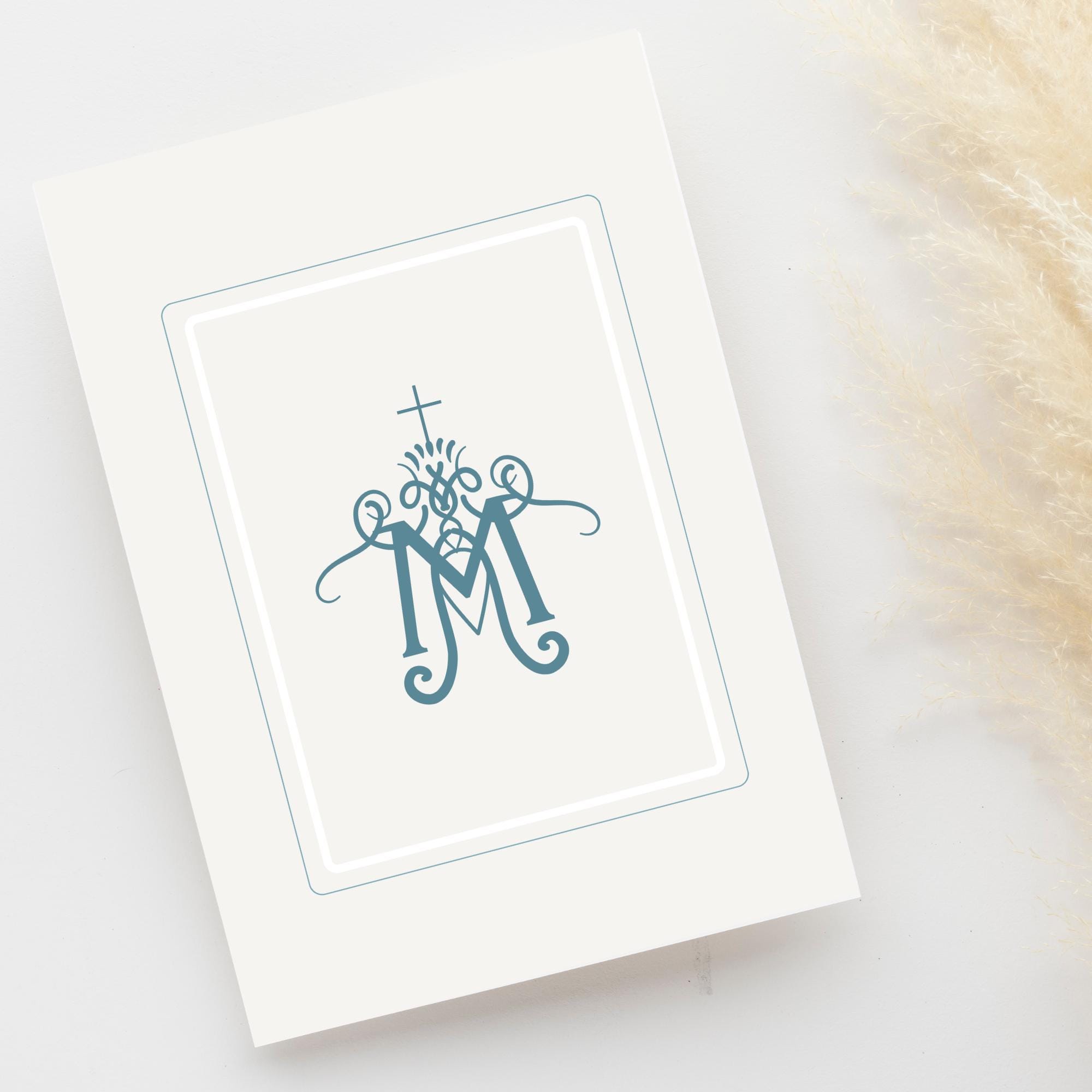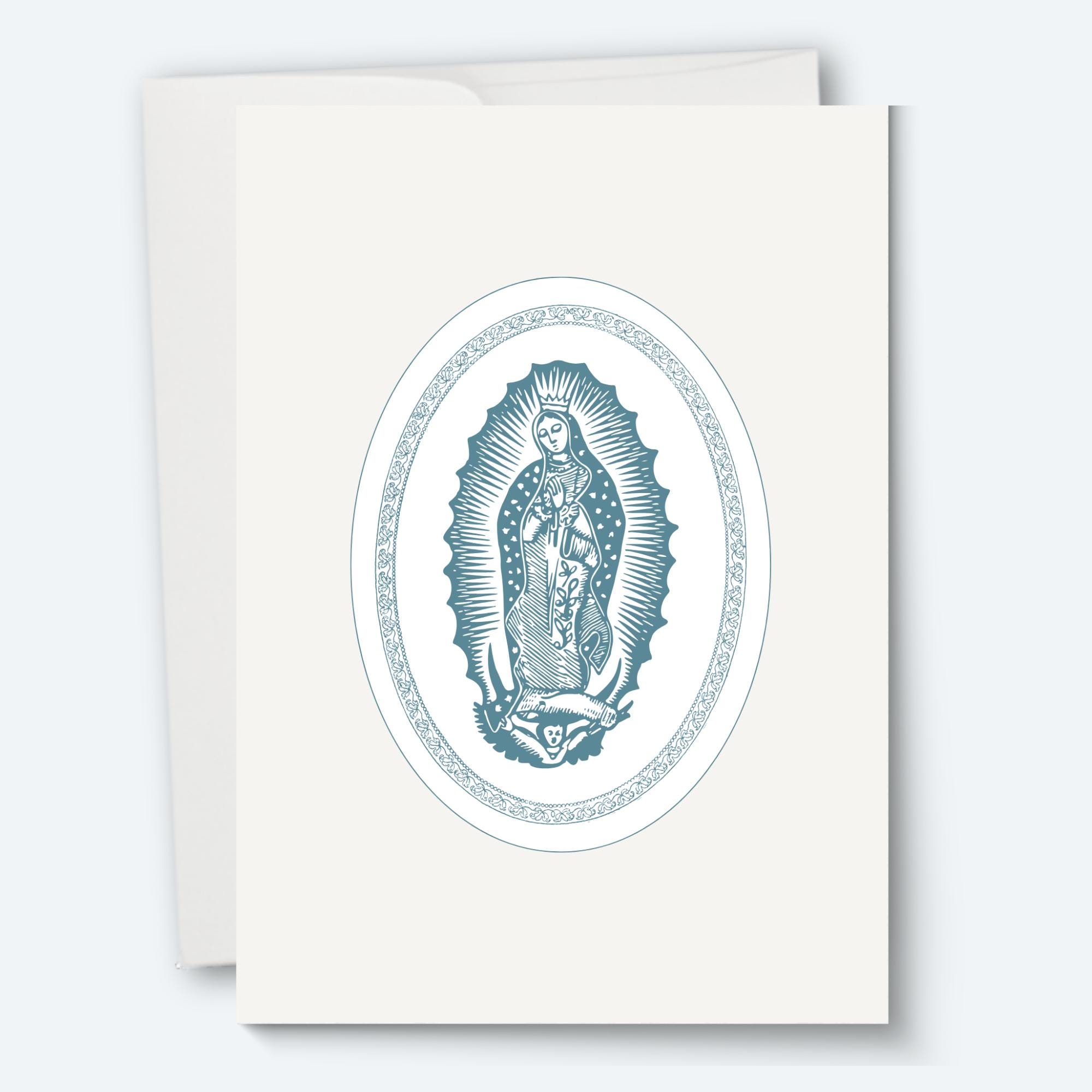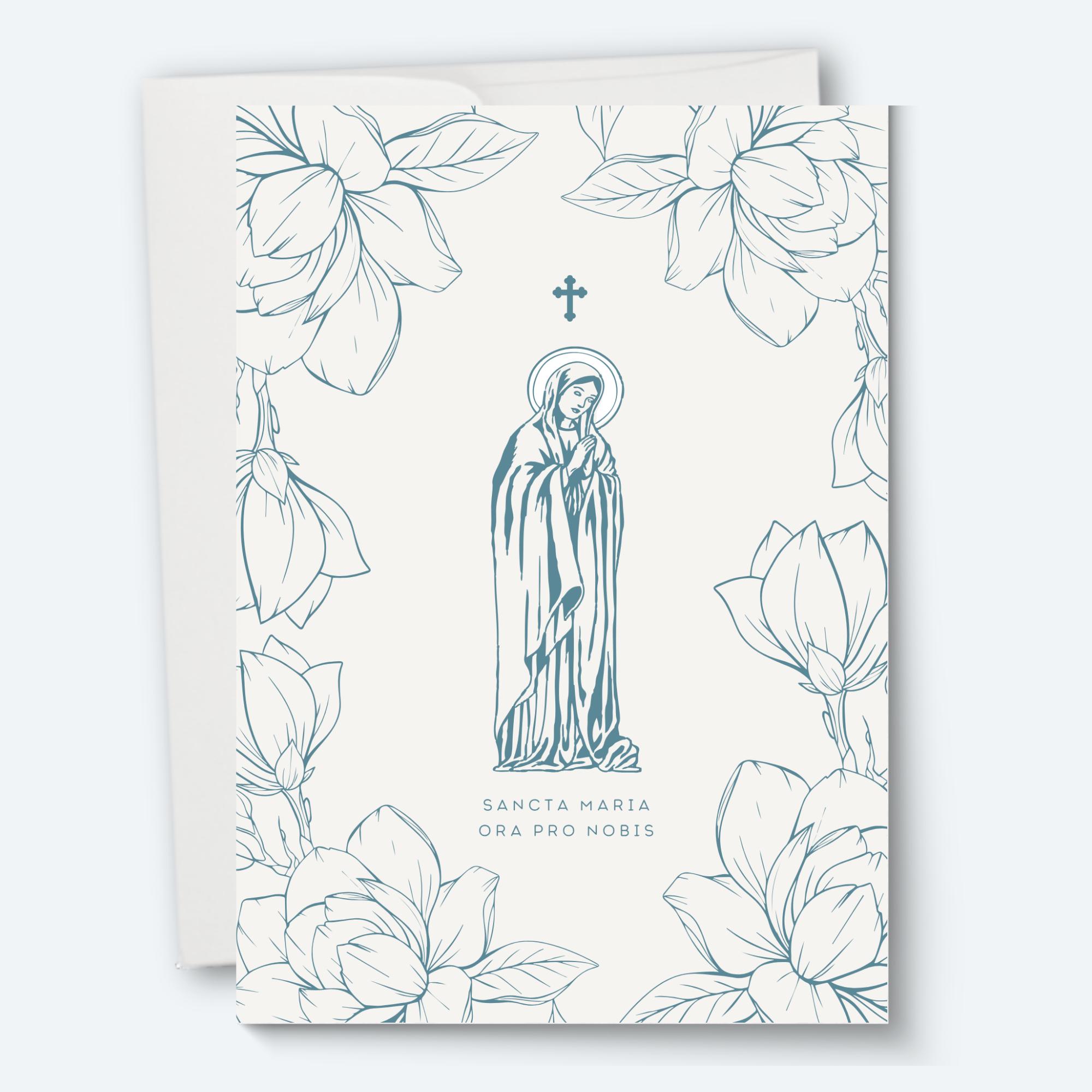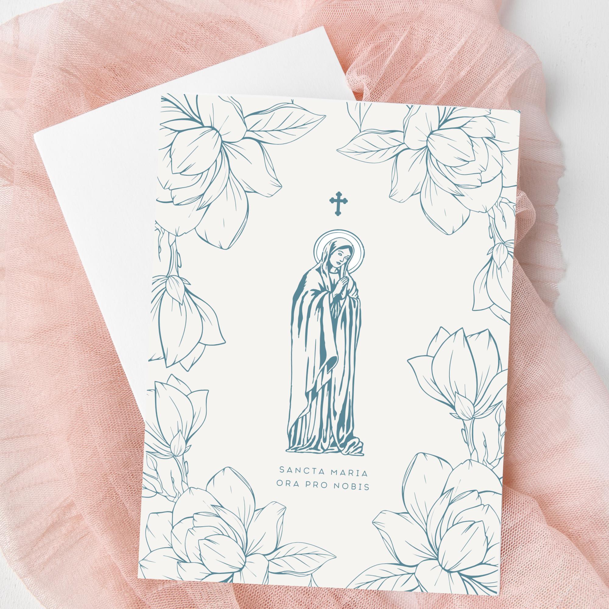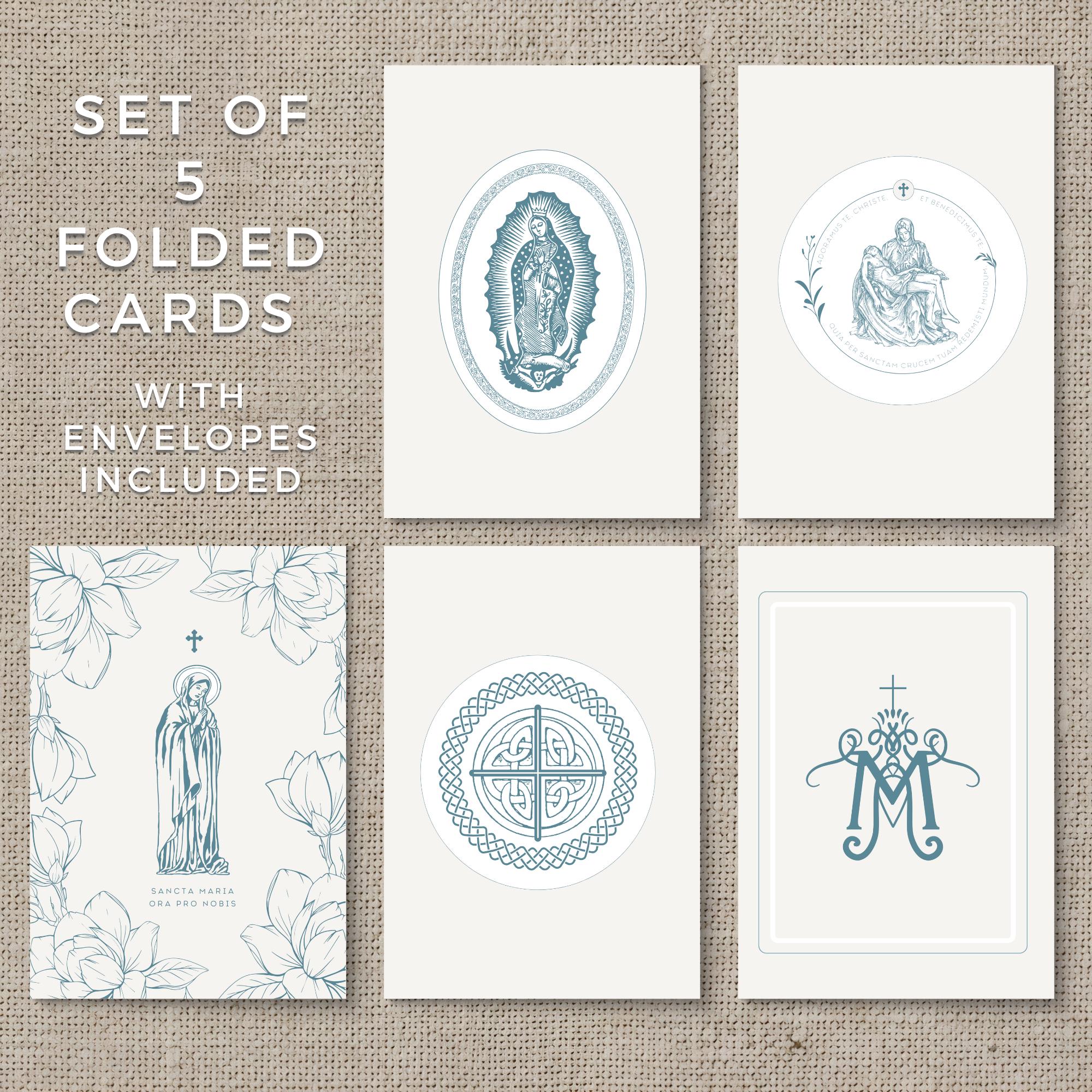 Enjoy this set of 5 Catholic greeting cards. Each card is printed on heavy art paper with vivid, crisp colors that keep the delicate linework and soft blue palette true to the original art.