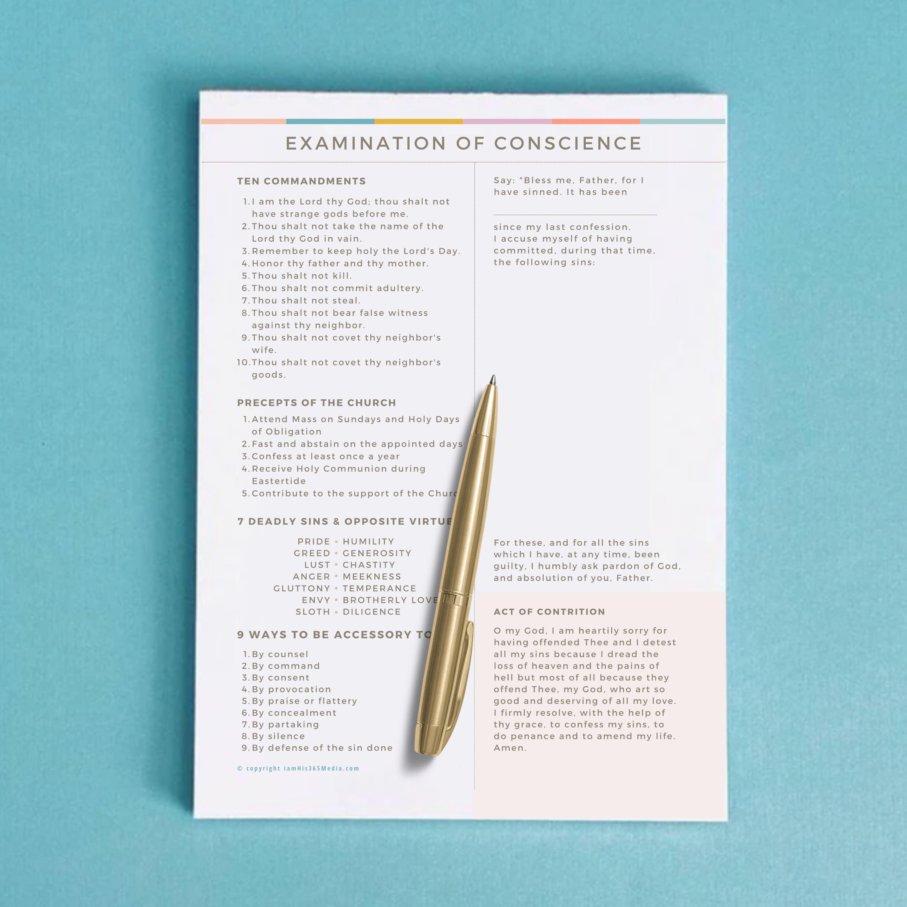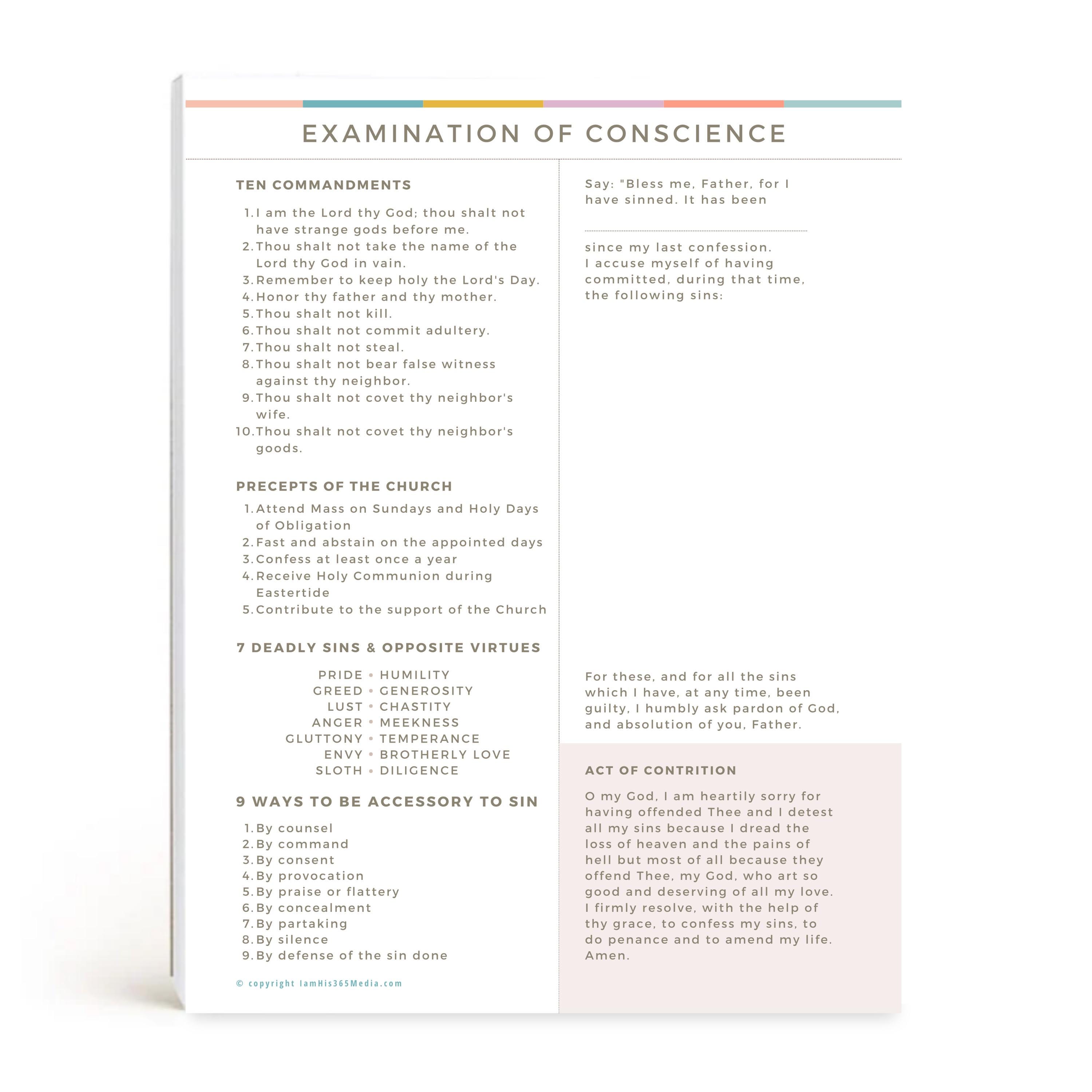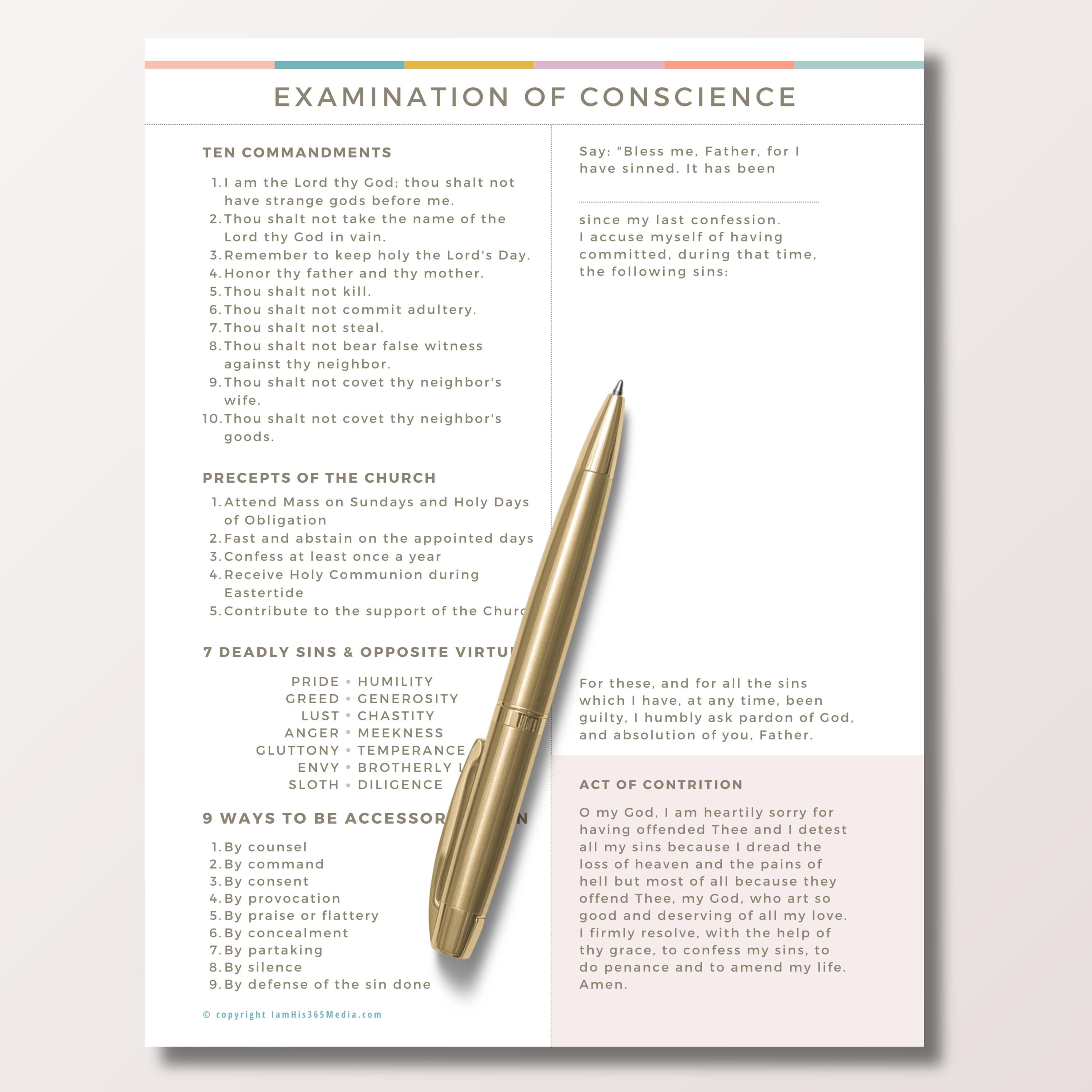 The traditional Act of Contrition is also included on the sheet so that you have everything you need to prepare for and make a good confession.
