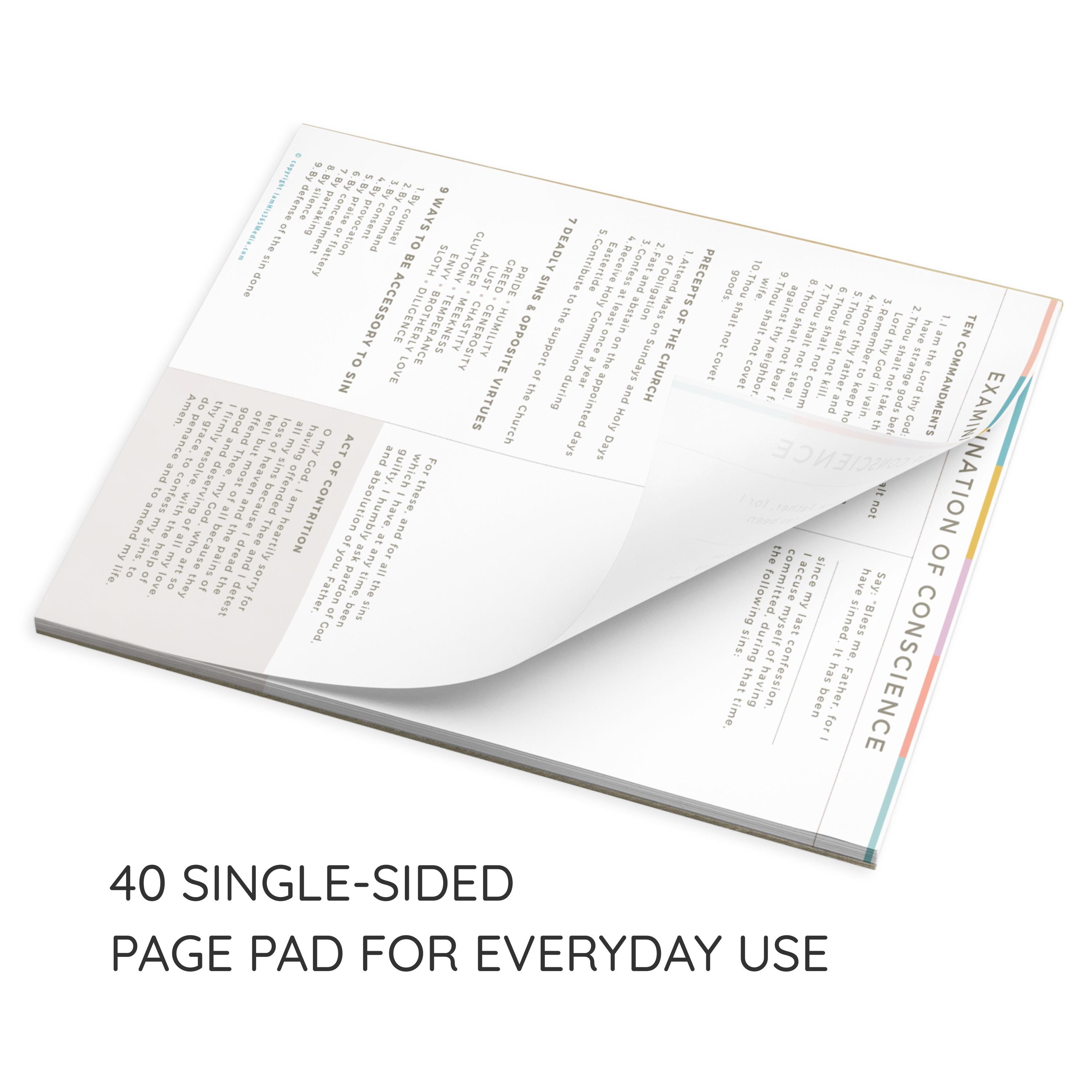 This 8.5" x 11" letter-size notepad includes 40 one-sided tear-away pages, making it easy to prayerfully prepare for confession whenever you need it.