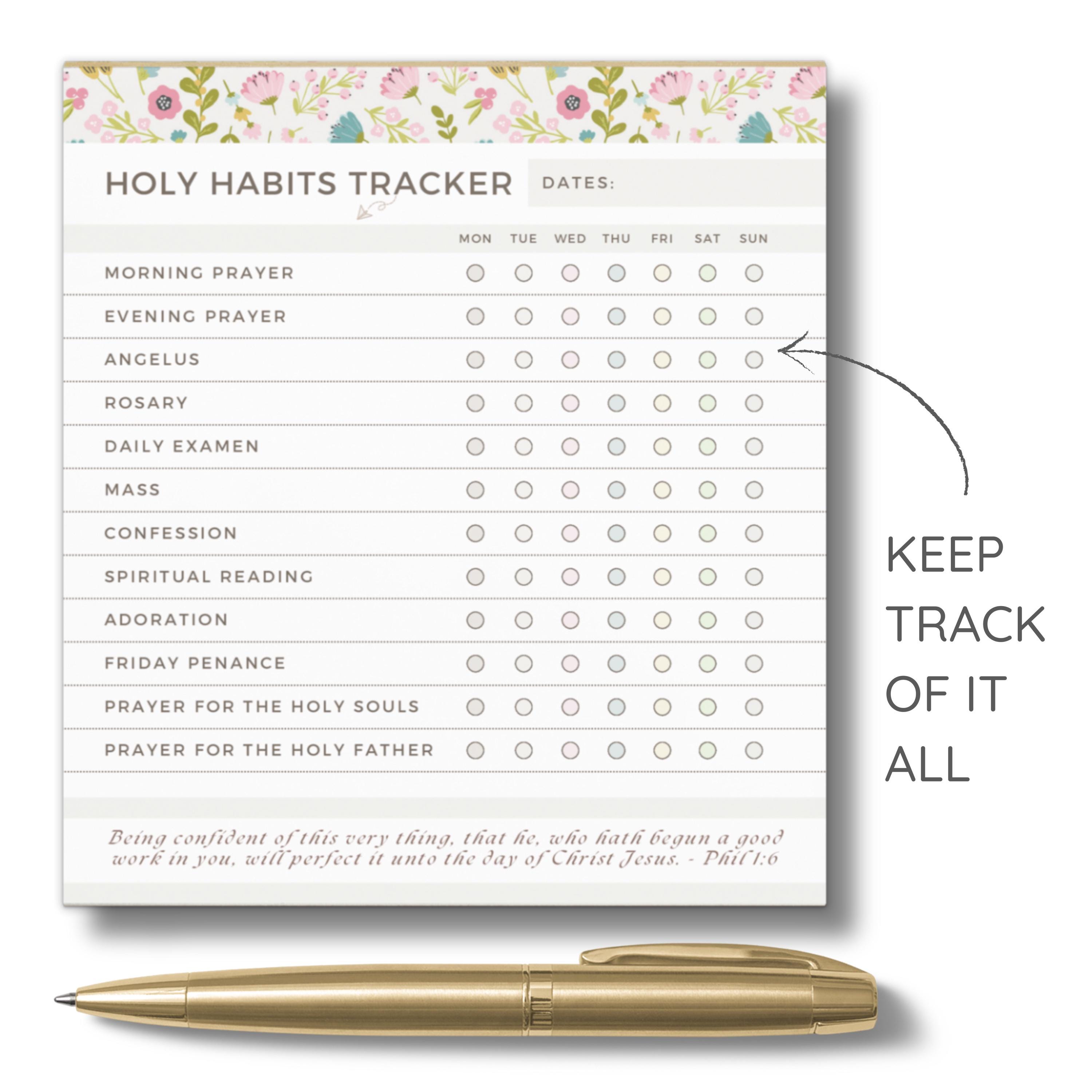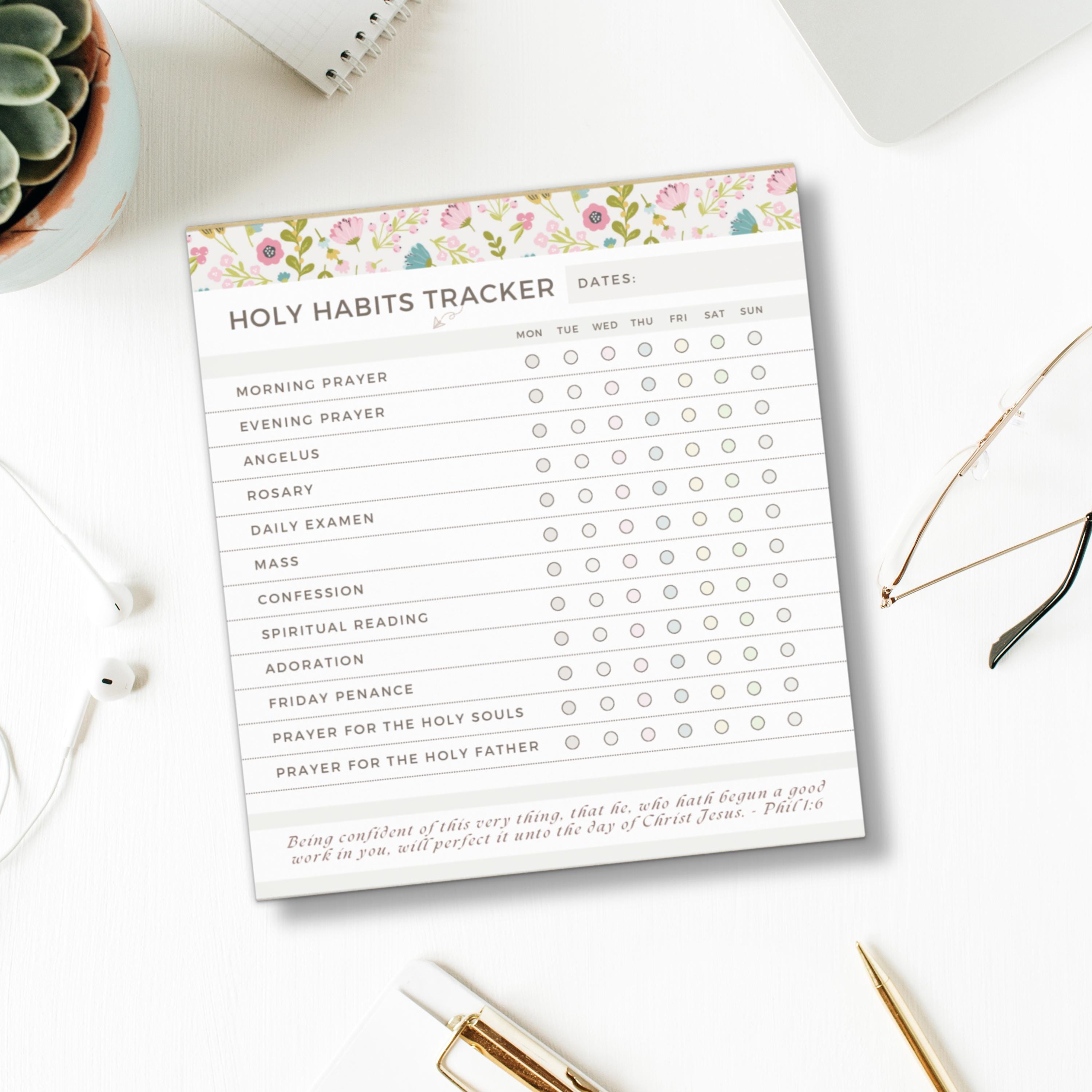 Strengthen your spiritual routine with this simple and practical Catholic Holy Habits Tracker notepad.