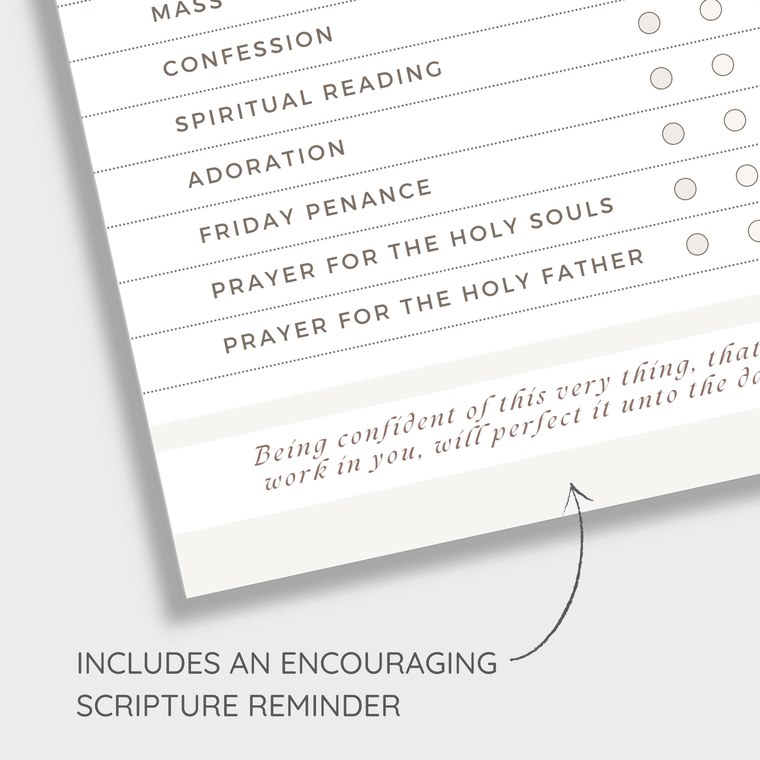 This notepad helps you stay mindful, intentional, and consistent as you grow in virtue and devotion.