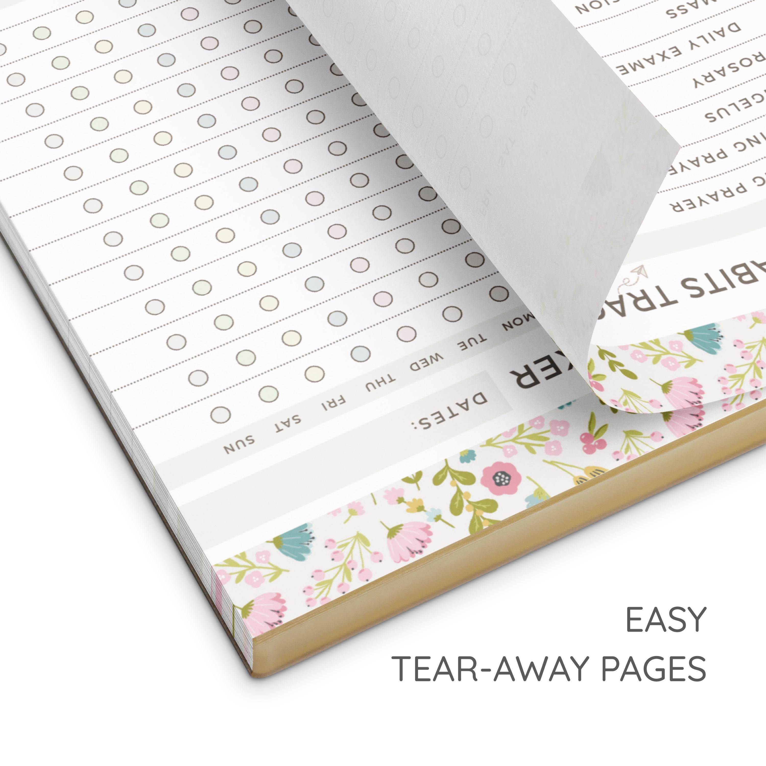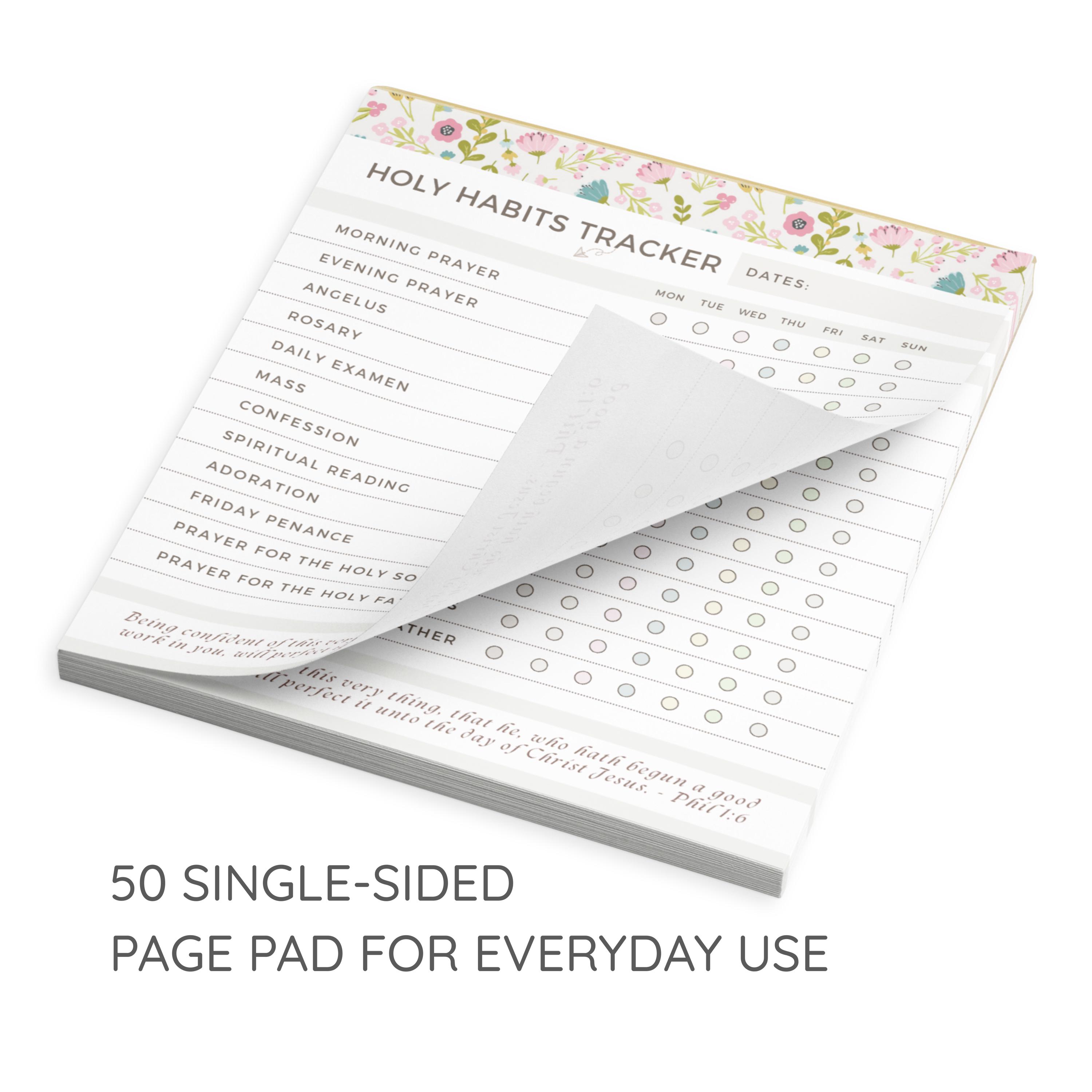 This 5.5" × 6" notepad includes 50 single‑sided tear‑away pages, giving you a beautiful and convenient way to track the daily and weekly habits that support a faithful Catholic prayer life.