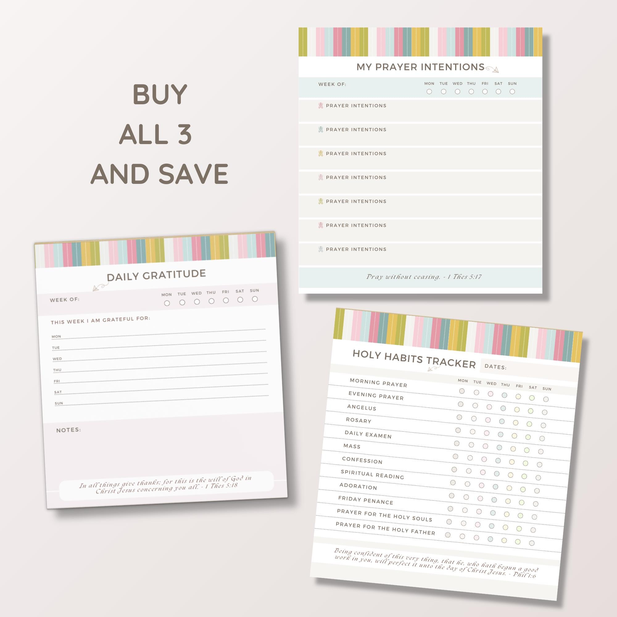 Each sheet provides space to record moments of gratitude, blessings received, and the ways God has been present throughout your day. Whether used during morning prayer, evening reflection, or weekly spiritual review, this notepad helps you build a steady rhythm of thanksgiving rooted in trust and awareness of God’s grace.