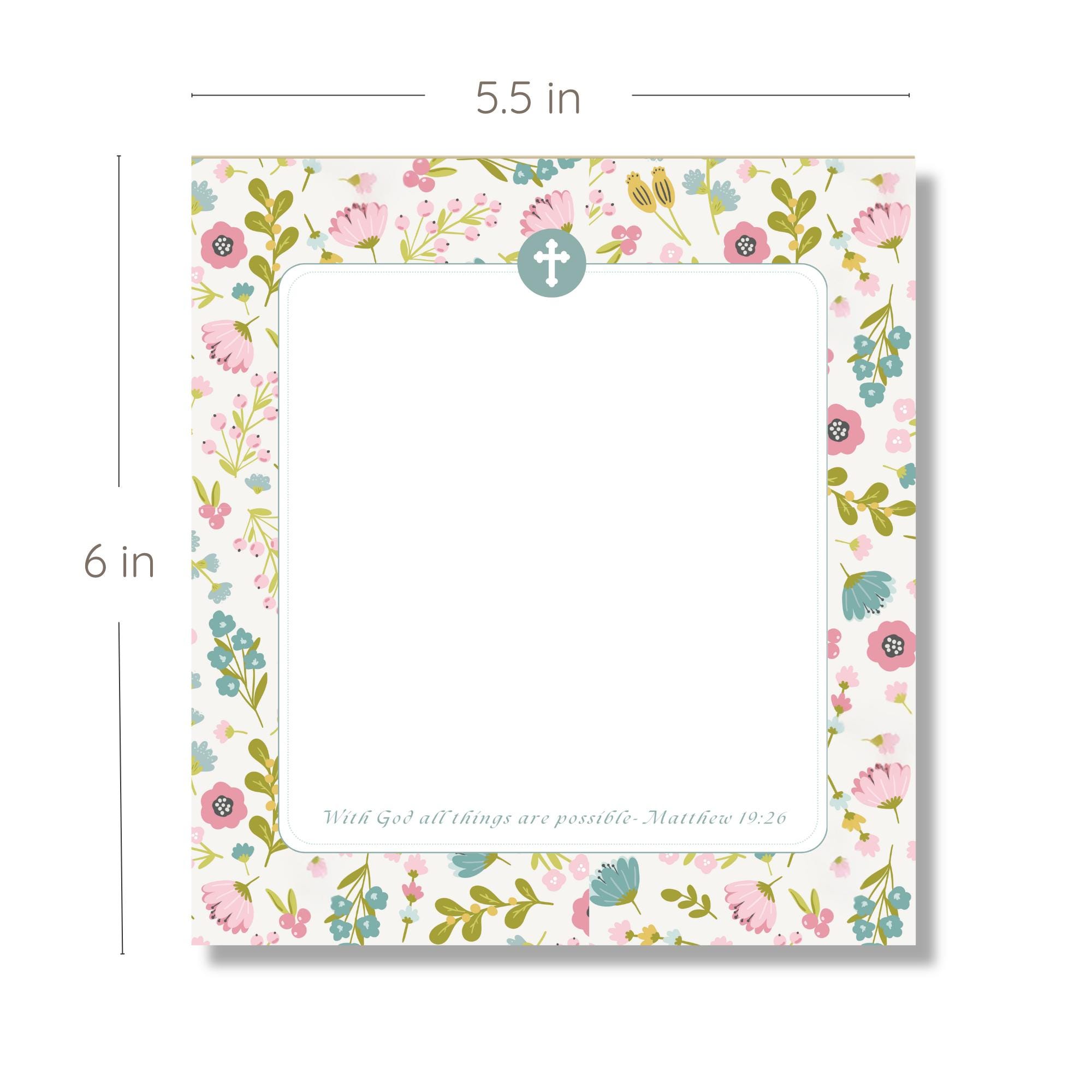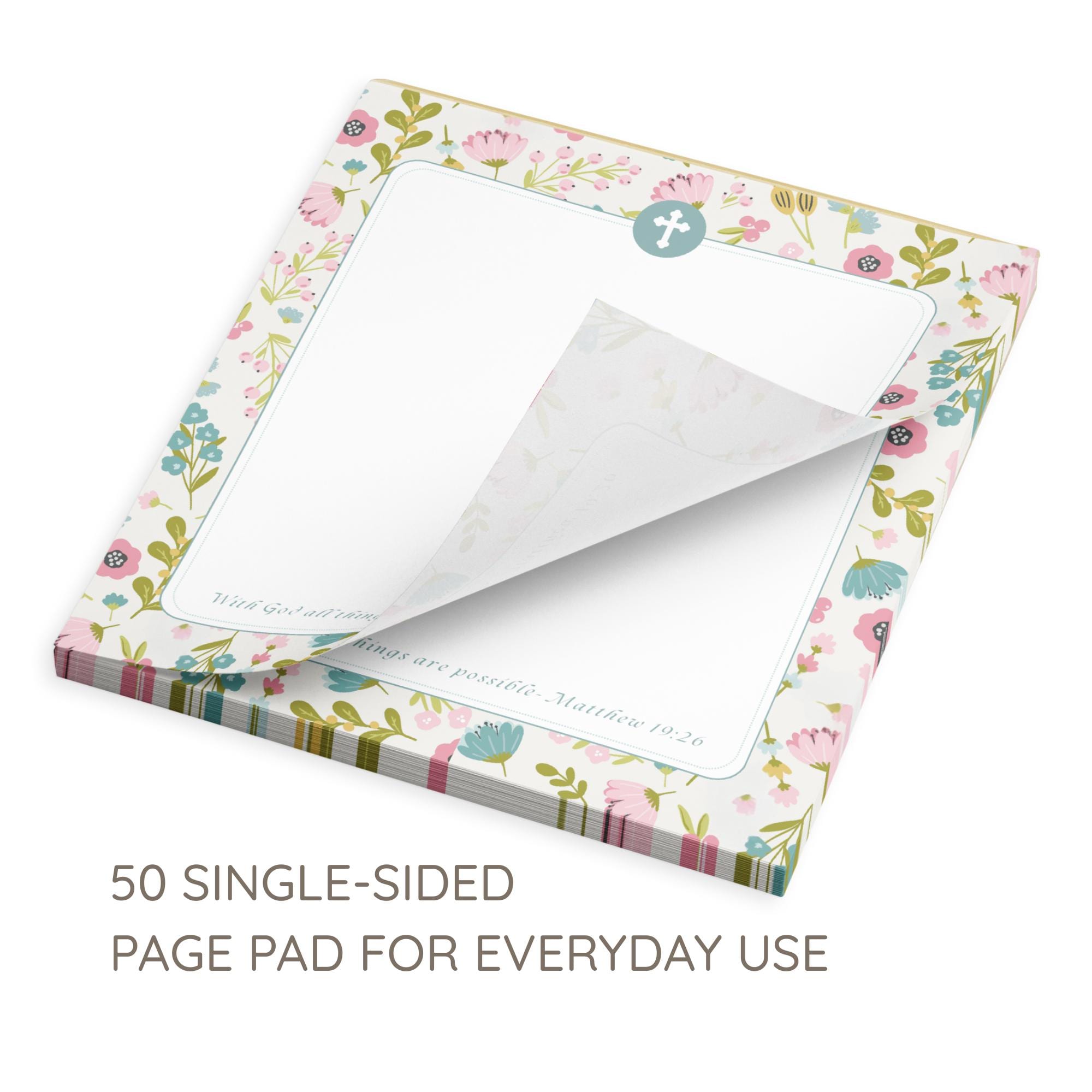 Designed in a soothing floral color palette, this notepad offers a peaceful and uncluttered space for spiritual or everyday notes. The single‑sided tear‑off pages make it easy to keep on a prayer table, desk, or inside a Bible or journal.